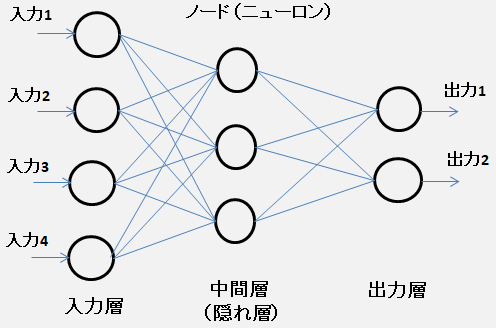 ニューラルネットワーク ・入力データを学習し、与えられた 探索問題 の 解決パターン を発生しようとする。 機械学習の有力な手法として発展。 訓練データを与え、入力と出力の相関(関数)を学習させる。 教師有り学習 方式のひとつ・人の神経構造を模したアルゴリズム ![]() ・出力層で人が望む結果が出るようにパラメータ(重みとバイアス)を調整する。 最適な重みパラメータをデータから自動で学習する。 損失関数の値をできるだけ小さくするパラメータを見つける